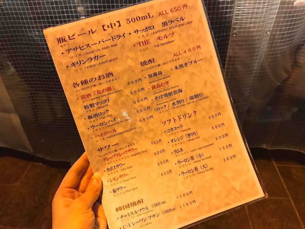 メニューはこちら。ほぼ見えませんね、ごめんなさい(苦笑)。